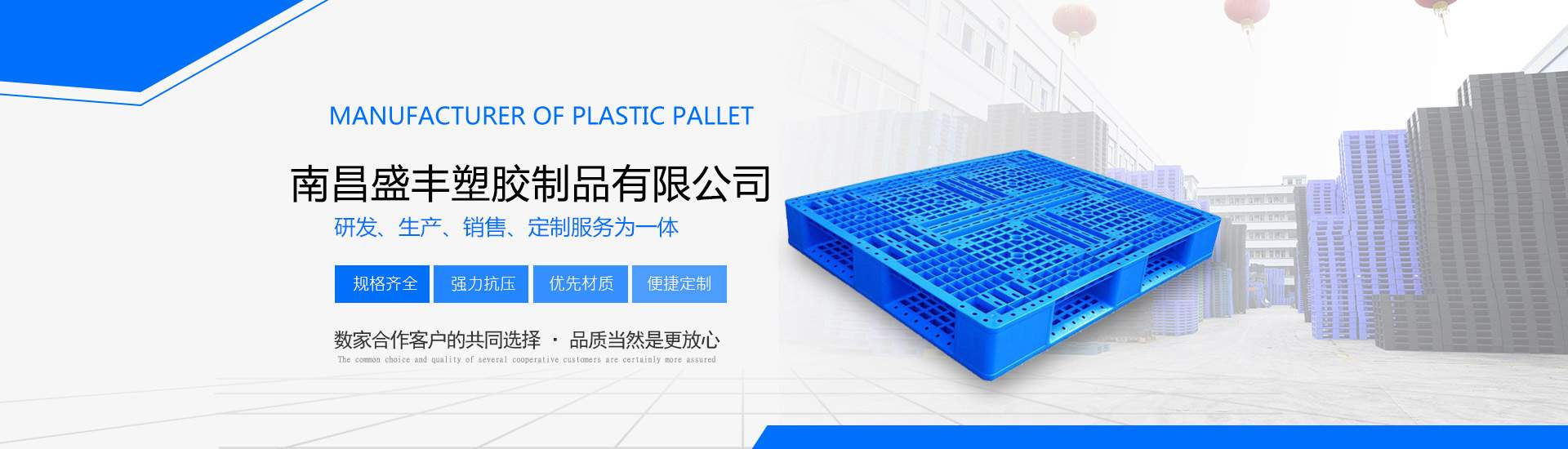 南昌盛豐塑膠制品有限公司擁有先進(jìn)大型注塑、吹塑滾塑成型設(shè)備,技術(shù)力量雄厚,是專(zhuān)業(yè)生產(chǎn)工業(yè)塑料產(chǎn)品的企業(yè)。主營(yíng)產(chǎn)品:塑料托盤(pán)、凹槽印刷托盤(pán)、煙標(biāo)煙盒印刷托盤(pán)、貨架叉車(chē)專(zhuān)用托盤(pán)、出口托盤(pán)、抗摔吹塑托盤(pán)、塑料棧板、塑料吹塑托盤(pán)、塑料地臺(tái)板、塑料倉(cāng)庫(kù)防潮板、塑料周轉(zhuǎn)箱、EU物流箱、歐標(biāo)箱、折疊箱、工具箱、食品箱、面包箱、面包架、周轉(zhuǎn)筐、籮、化工桶、PE水塔、塑料PE水箱、垃圾桶、塑料加藥箱、塑料一噸方桶、塑料IBC噸桶、打不爛餐具消毒箱、等制品。我們秉承誠(chéng)信服務(wù)的意念,在產(chǎn)品的售后服務(wù)上,我們有著專(zhuān)業(yè)的業(yè)務(wù)人員定時(shí)跟進(jìn),確保客戶(hù)滿(mǎn)意度!
