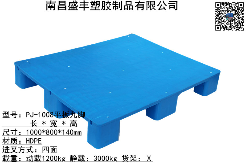 平板九腳塑料托盤,此款托盤底部為‘九腳形’,表面是‘平面’的塑料搬運(yùn)制品(如圖),在紡織廠、食品廠、醫(yī)藥廠等企業(yè)應(yīng)用較為廣泛,與鋼托盤,木托盤相比具有質(zhì)輕、平穩(wěn),美觀整體性好,無釘無刺,無毒無味。耐酸堿,不腐爛,不易被細(xì)菌繁殖,易清洗消毒,不助燃,無靜電,無火花,防暴,防滑溜,回收價(jià)值高等特點(diǎn),產(chǎn)品無毒無害,設(shè)計(jì)美觀,可以提升企業(yè)形象,提高企業(yè)物流效率。